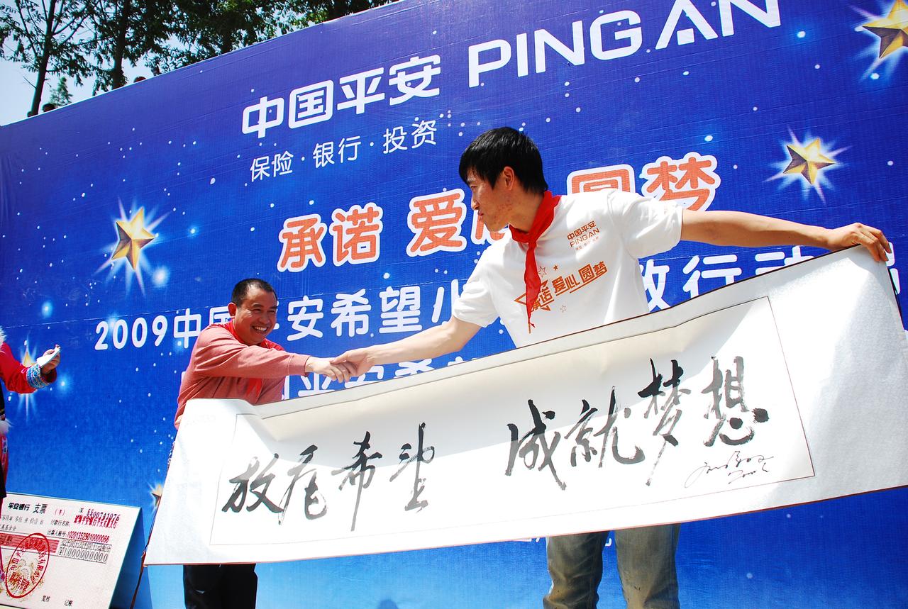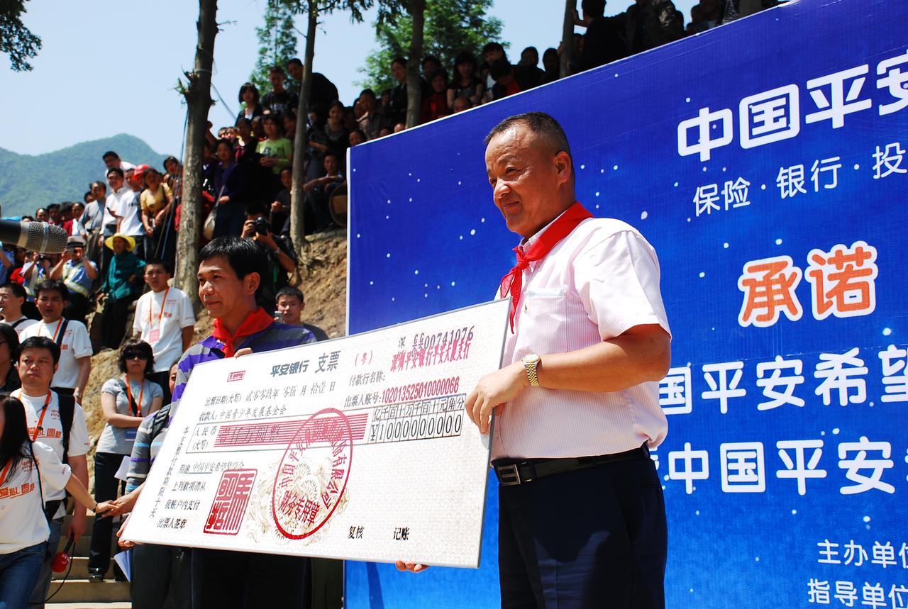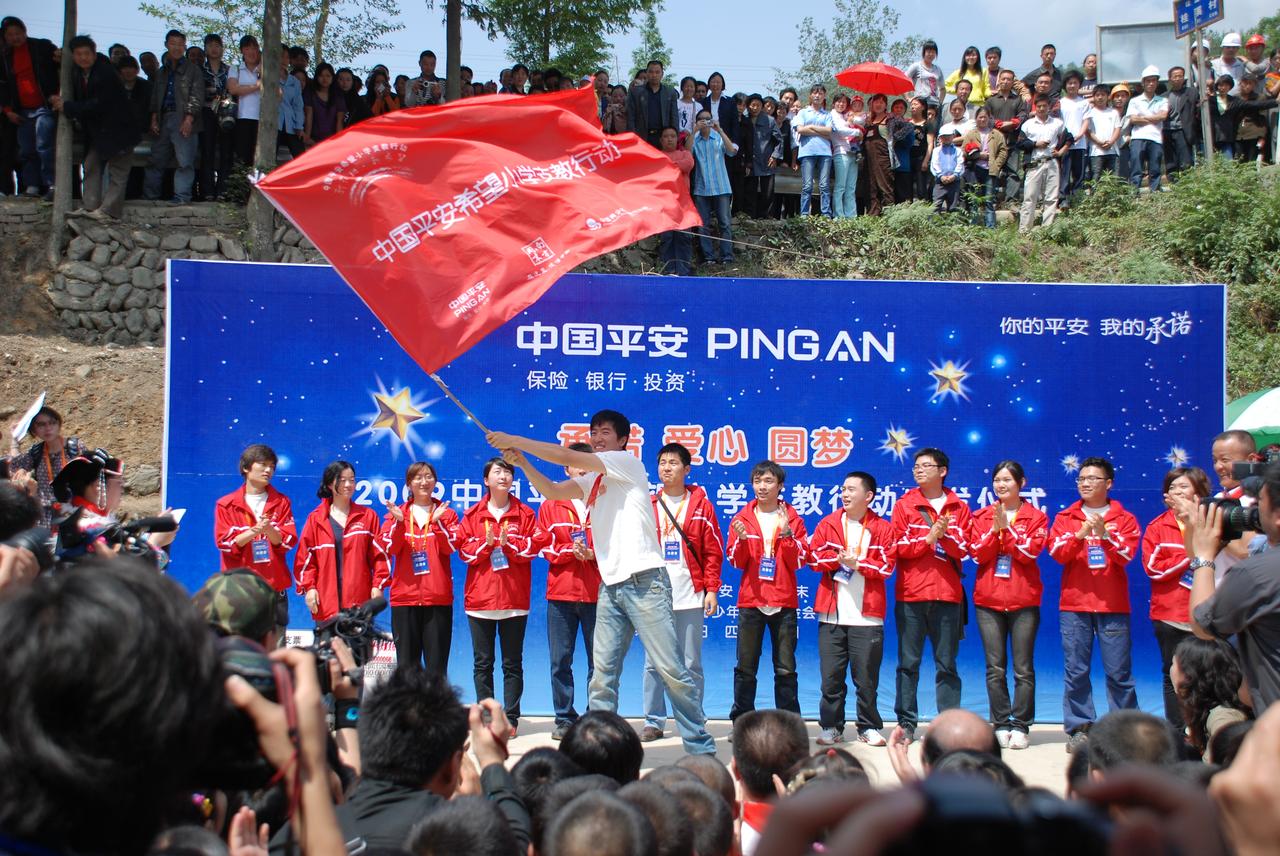5月11日,以“承諾、愛心、圓夢”為主題的“新農村 新希望”中國平安希望小學支教行動出發(fā)儀式在四川省北川平安小學舉行。儀式上,中國平安宣布首筆捐贈1000萬元設立中國平安希望獎學金,以持續(xù)激勵的方式,鼓勵所有平安出資設立的小學中符合條件的學生,完成從小學至大學的全部學業(yè)。當日,中國平安公益大使劉翔作為特殊的志愿者,首次為學生獻上了自己的第一節(jié)體育輔導課。